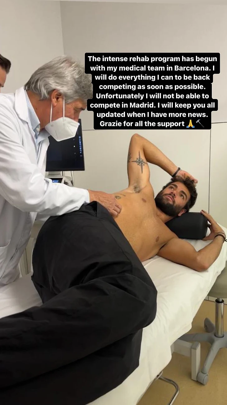 «Я начал интенсивную программу реабилитации в Барселоне. Я сделаю все возможное, чтобы как можно скорее вернуться к соревнованиям. К сожалению, я не смогу сыграть в Мадриде. Я буду держать вас в курсе. Спасибо за поддержку», – написал итальянец.