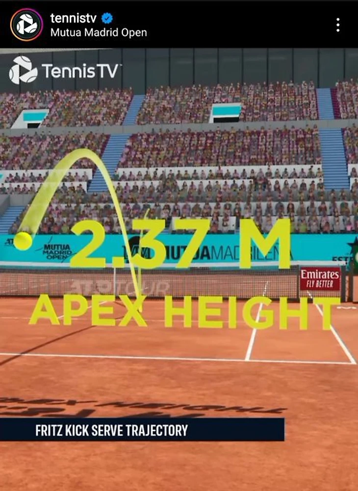 Tennis TV выложил траекторию, по которой пролетел эйс со второй подачи Фрица, с подписью: «Этот грунтовый отскок! Безумный эйс со второй подачи от Тэйлора Фрица».