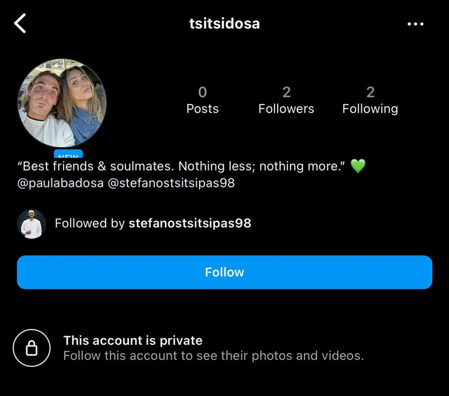 Стефанос Циципас и Паула Бадоса, возможно, завели совместный инстаграм – tsitsidosa. Циципас на него подписался.