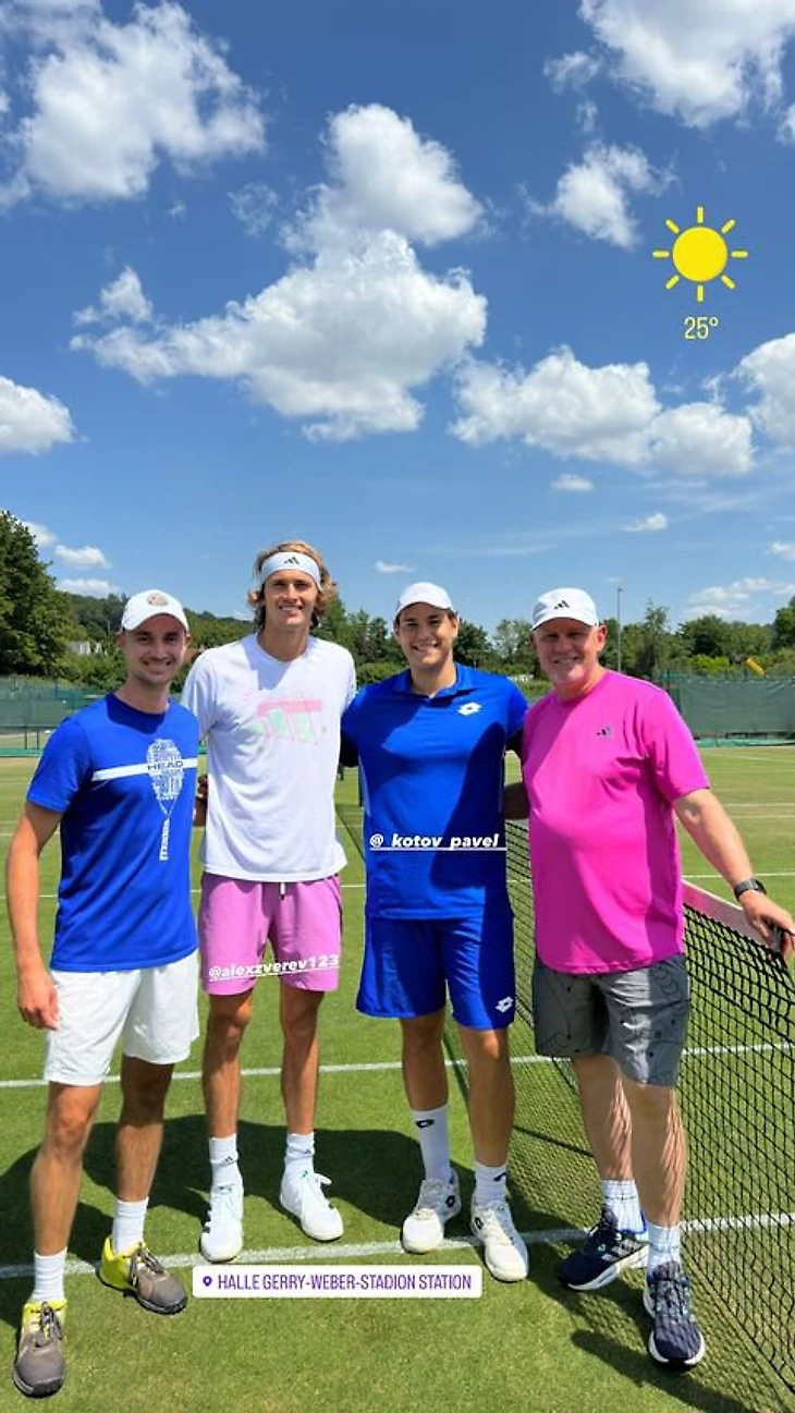112-я ракетка мира Павел Котов проводит подготовку к турниру в Галле. В рамках этого процесса он потренировался с Александром Зверевым и Денисом Шаповаловым.