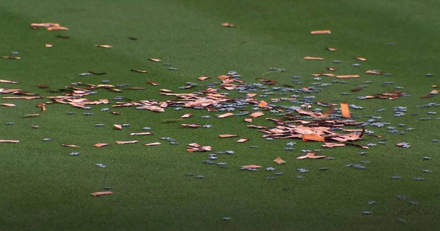 Два активиста движения Just Stop Oil выбежали на корт и рассыпали оранжевые конфетти. Они пронесли их в коробках с официальными пазлами турнира, на которых изображен Центральный корт.