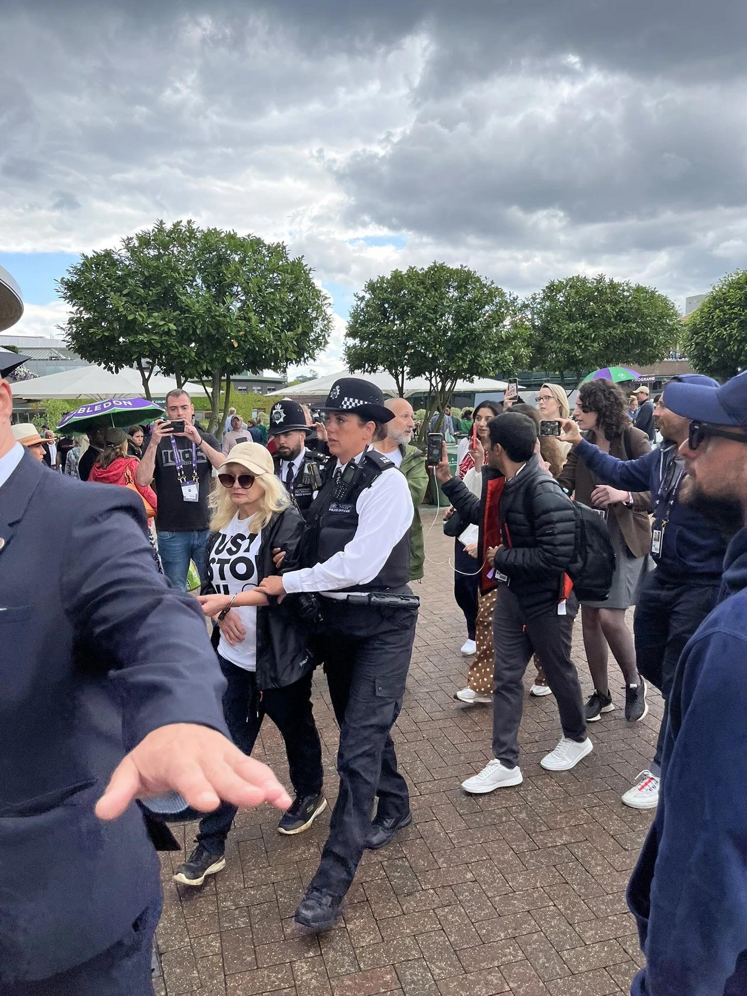Активистов вывели с корта под аплодисменты зрителей. Нарушители покинули территорию в сопровождении полиции.