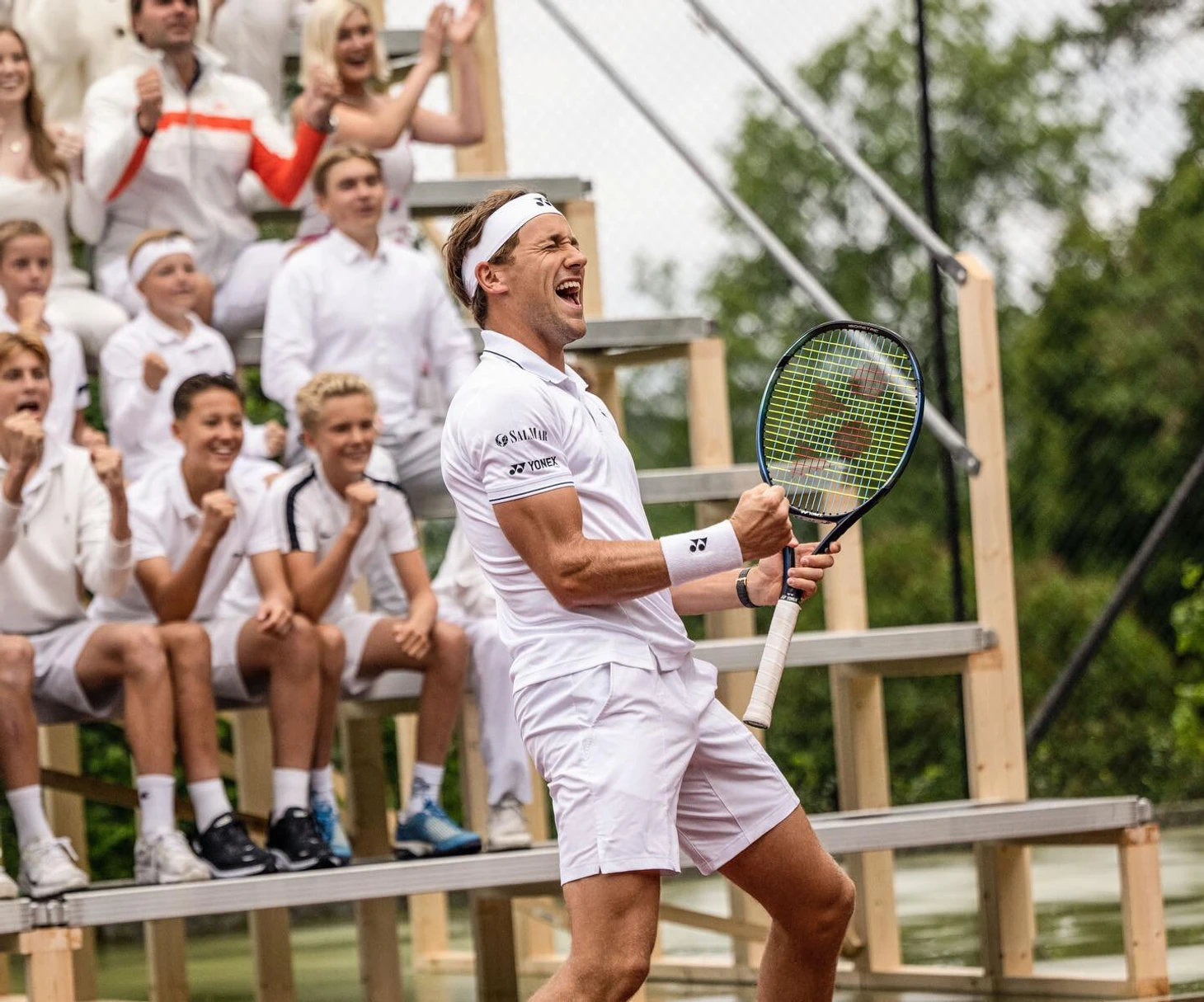 Рууд снялся в образе викинга, а также на теннисном корте.