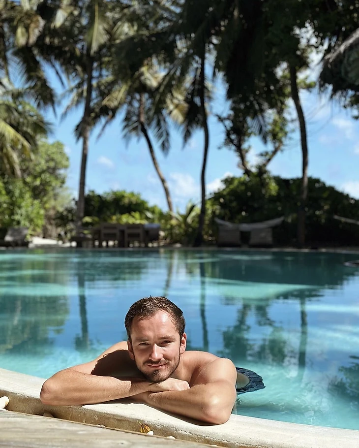 Даниил Медведев показал, как проводит отпуск с семьей на Мальдивах.