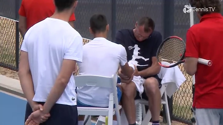 Он начал испытывать дискомфорт во время тренировки на United Cup. Ему оказывал помощь физиотерапевт.