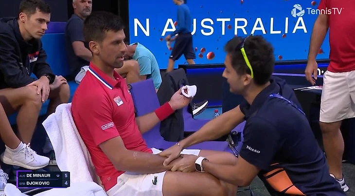 Новак Джокович испытывал проблемы с правым запястьем в четвертьфинале United Cup против Алекса де Минаура. Серб уступил 4:6, 4:6.