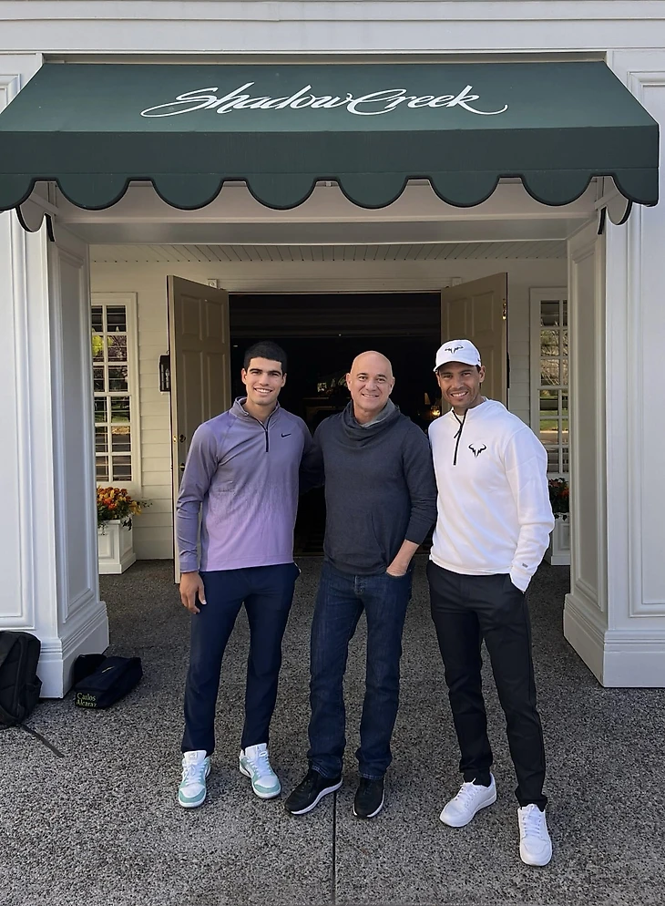 Рафаэль Надаль поделился фотографией с Карлосом Алькарасом и Андре Агасси.
