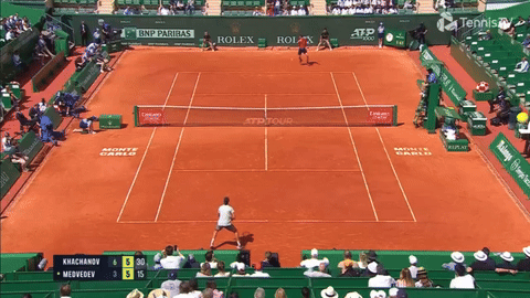 После этого Медведева оштрафовали на очко, счет стал 5:6, 0:15. Хачанов подал на матч.