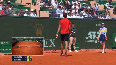 Россиянин не согласился с решением линейного судьи при счете 5:5, 15:30 во втором сете. Линейный не крикнул аут после удара Карена Хачанова, розыгрыш продолжился, и Медведев его проиграл. Медведев посчитал, что на самом деле Хачанов не попал в корт.