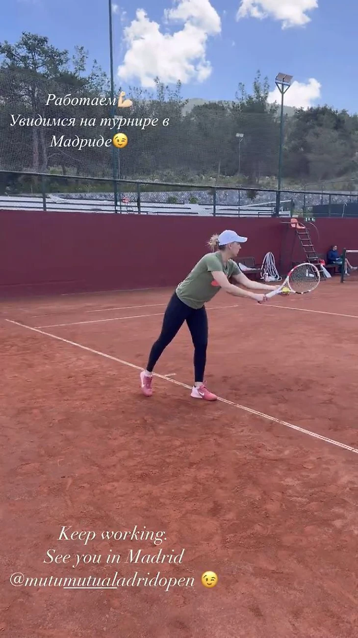 Тренировку на грунте она подписала: «Работаем. Увидимся на турнире в Мадриде».