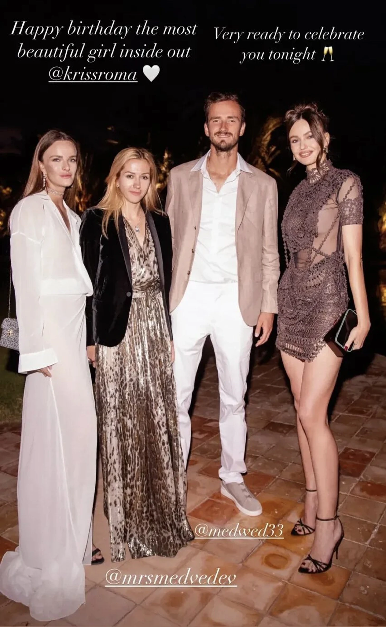 Мария Шарапова, Даниил Медведев, его жена Дарья и крестная их дочери Арина Кузьмина прилетели в Марокко на 30-летие российской модели Кристины Романовой.