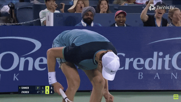 Реализовав матчбол, Синнер эмоционально отреагировал и громко крикнул Come on.