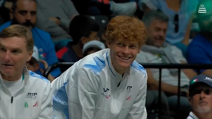 Янник Синнер пришел поболеть за сборную Италии на Кубке Дэвиса в Болонье.