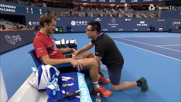 Даниил Медведев взял медицинский перерыв в полуфинале против Карлоса Алькараса в Пекине.