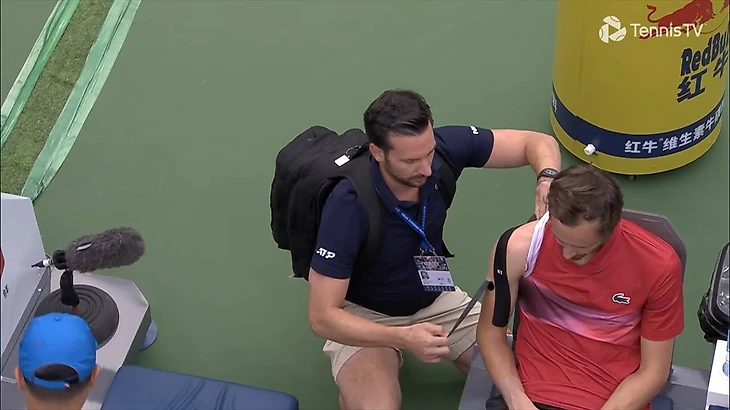 Он вышел на матч с тейпами, а в перерыве между сетами Медведев вызывал на корт физио.