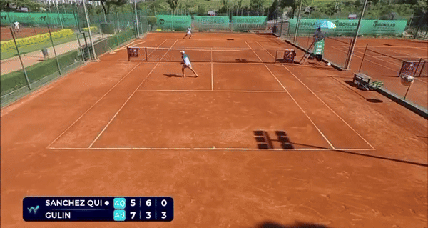 После удара Гулина соперник посчитал, что мяч ушел в аут, судья спустился с вышки, посмотрел отметку и отдал очко испанцу. Счет снова стал «ровно».