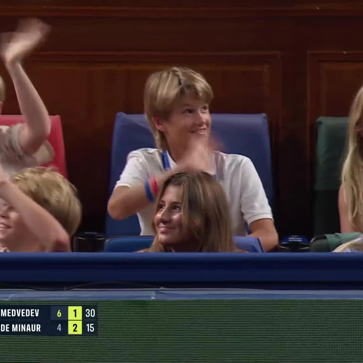 Дети Роджера Федерера присутствуют на игре Даниила Медведева и Алекса де Минаура.