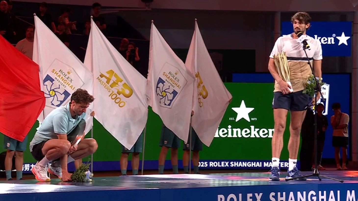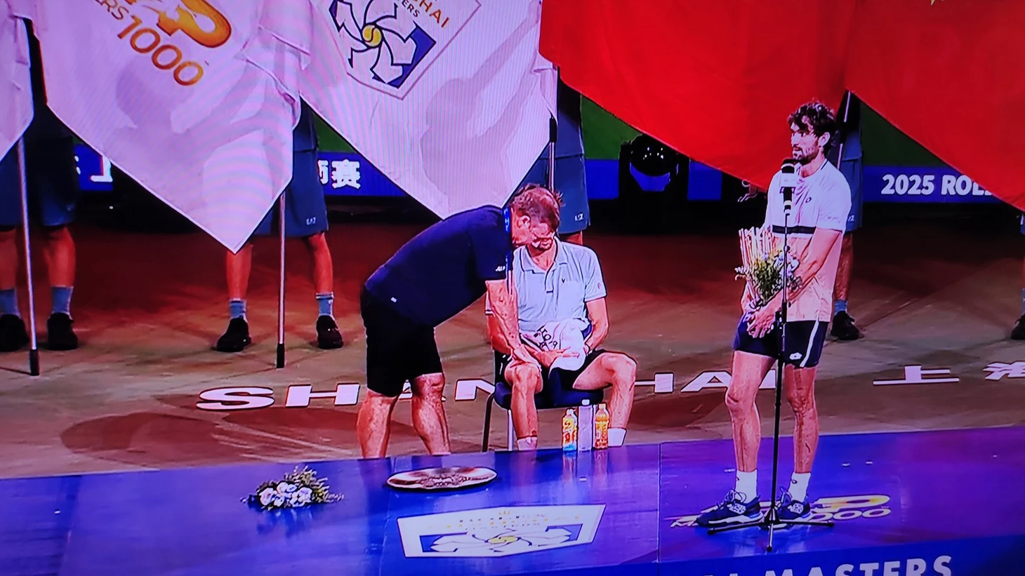 Артуру Риндеркнешу вызывали физио во время церемонии награждения в Шанхае.