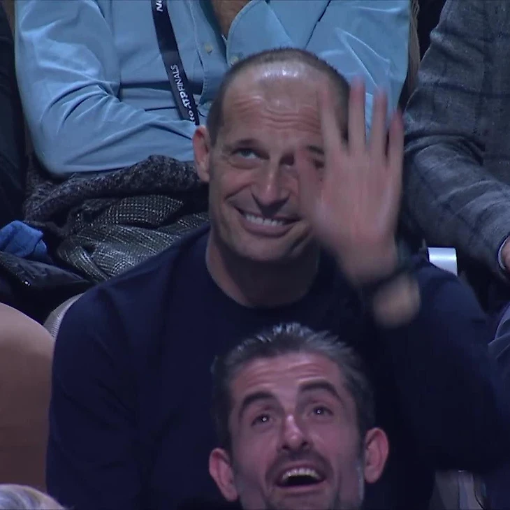 Массимилиано Аллегри присутствует на матче группового этапа итогового турнира ATP между Янником Синнером и Александром Зверевым.