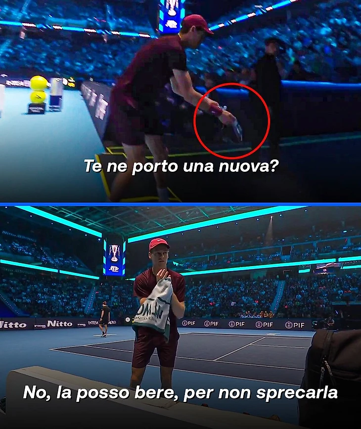 Он ополоснул руки из маленькой бутылки воды, после чего болбой предложил принести ему новую. Синнер ответил: «Нет, я могу допить – чтобы не выбрасывать».