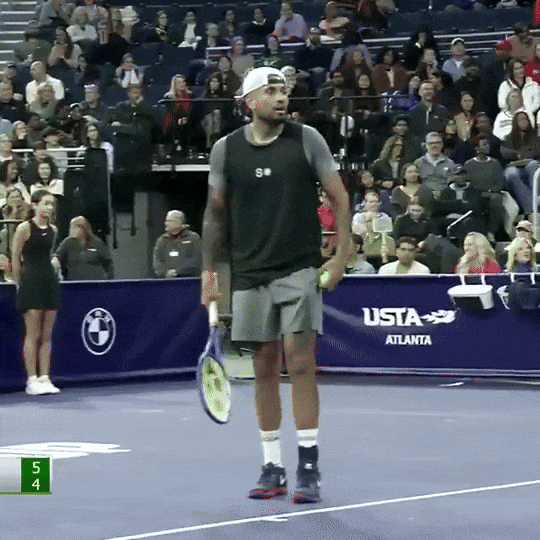 Ник Кириос подал эйс с руки, ударив по мячу между ног на выставочном турнире Atlanta Cup в Дулуте. Австралиец играл с Беном Шелтоном – уступил ему со счетом 6:7, 3:6.