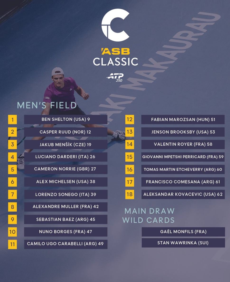 Бен Шелтон и Каспер Рууд сыграют на турнире в Окленде.