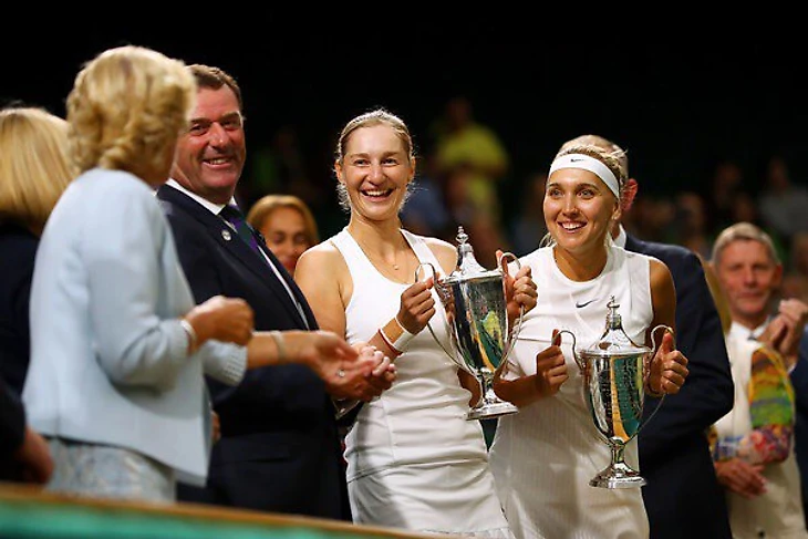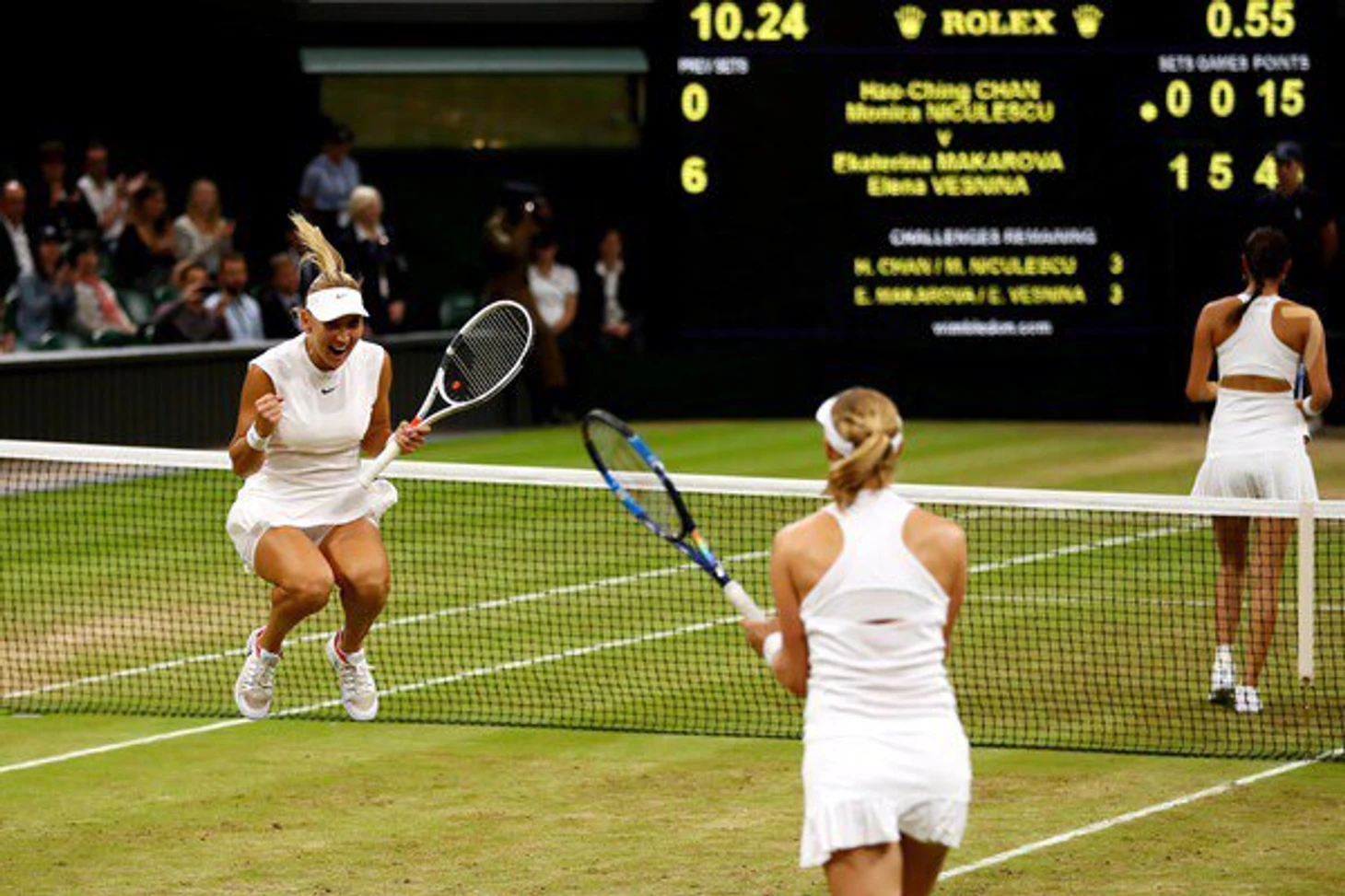 Елена Веснина и Екатерина Макарова в финале «Уимблдона» ни отдали ни одного гейма Монике Никулеску и Хаоцзин Чжань и выиграли свой третий турнир «Большого шлема» и первый «Уимблдон». Теперь до карьерного Большого Шлема им не хватает только победы на Australian Open.