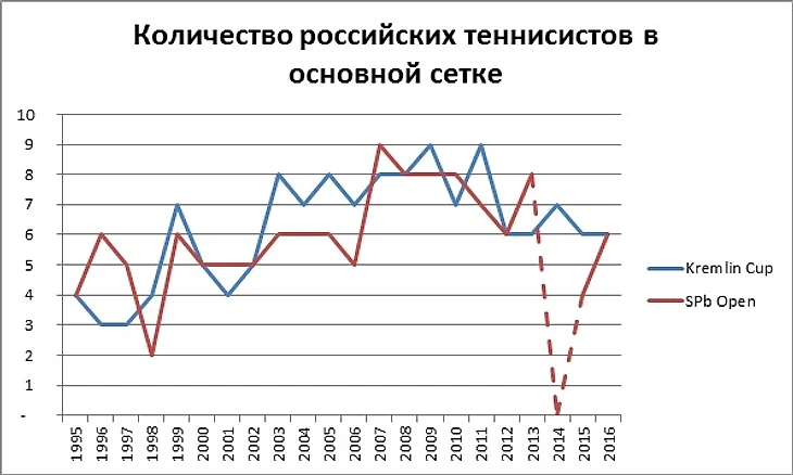Очевидно, что даже когда Кубок Кремля однозначно был более статусным турниром, количество российских теннисистов в его основной сетке было не меньше, чем в Петербурге – то есть участие российских игроков для московского турнира всегда было важным. Однако, разрыв в количестве россиян всегда был невелик. При этом SPb Open 2016 показал, что приглашение мировых звезд и активное вовлечение российских теннисистов – не взаимоисключающие понятия: количество россиян было одинаковым и в Москве, и в Петербурге. Да и тезис о том, что «если наш проходит с первого круга 3-4 матча при наших зрителях, при нашей борьбе, при наших болельщиках, то наш теннисист приобретает гораздо больше» (слова Тарпищева) оказался спорным – на Кубке Кремля 2016 года из 6 российских теннисистов барьер первого круга прошли трое, второго – только один (в Петербурге – 4 и 1 теннисист соответственно).