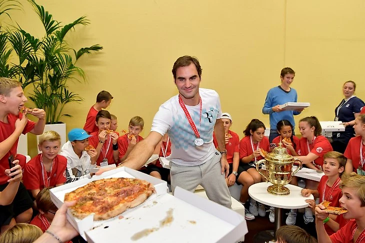 На прошлой неделе Роджер Федерер обыграл Хуана Мартина дель Потро и в восьмой раз победил на домашнем турнире в Базеле. Взяв седьмой кубок в этом сезоне, швейцарец продолжил одну из самых классных теннисных традиций и угостил пиццей всех мальчиков и девочек, которые подавали мячи по ходу турнира.