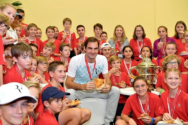 Федерер начал эту традицию больше десяти лет назад. Доходя до финала в Базеле, он каждый раз собирает детей, ест с ними пиццу и болтает о жизни. Маэстро прекрасно находит с ними общий язык, потому что сам раньше работал болбоем на базельских кортах.