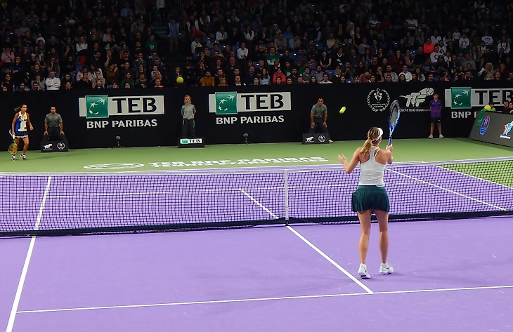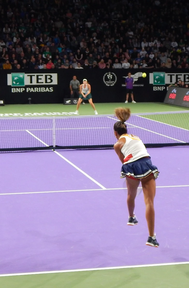 Когда после удара Марии мяч прилетел в стенку трибуны, сидящие рядом мужчины переглянулись, удивленно комментируя силу удара.