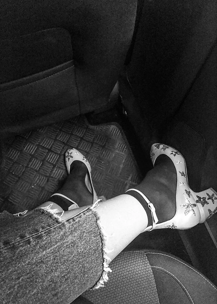 Чрезмерная концентрация не лучших микротрендов на одном участке тела: джинсы с бахромой, носки с туфлями, пайетки. Носки я бы однозначно убрала. А туфли бы заменила на белые кеды или джинсы – на брюки-дудочки.