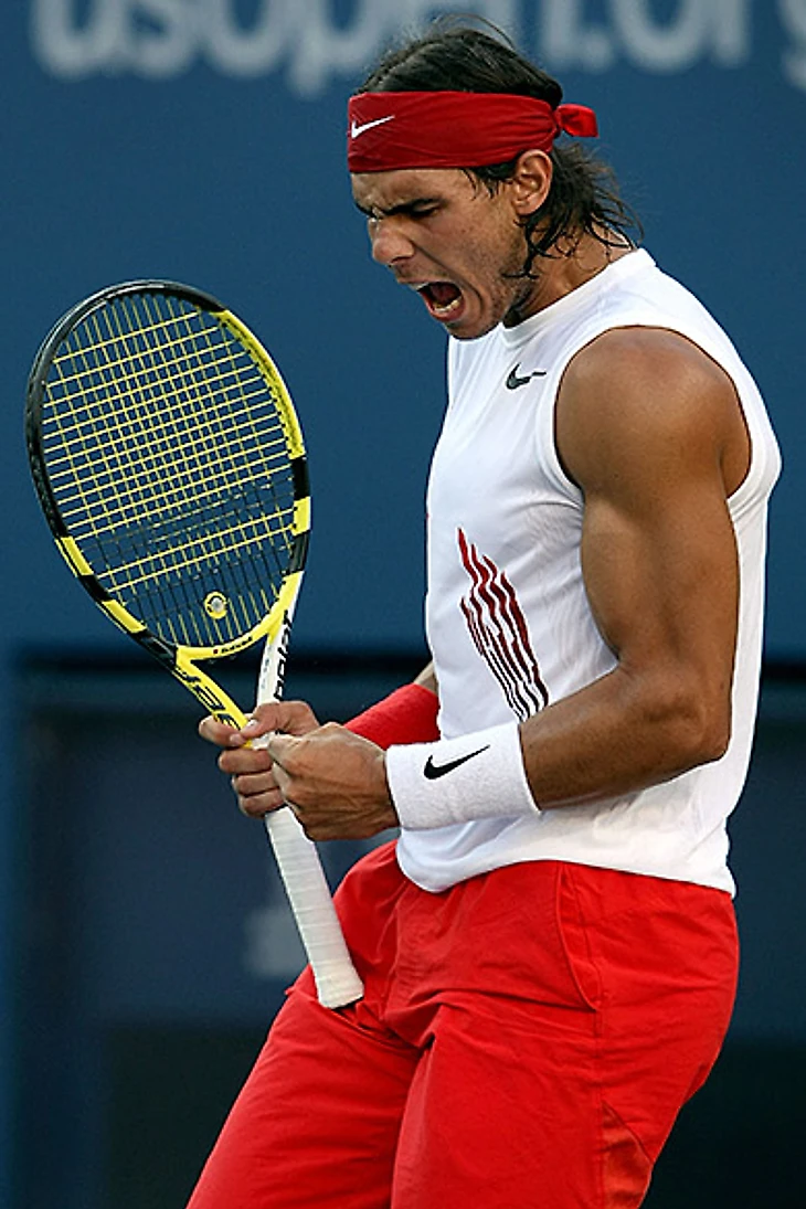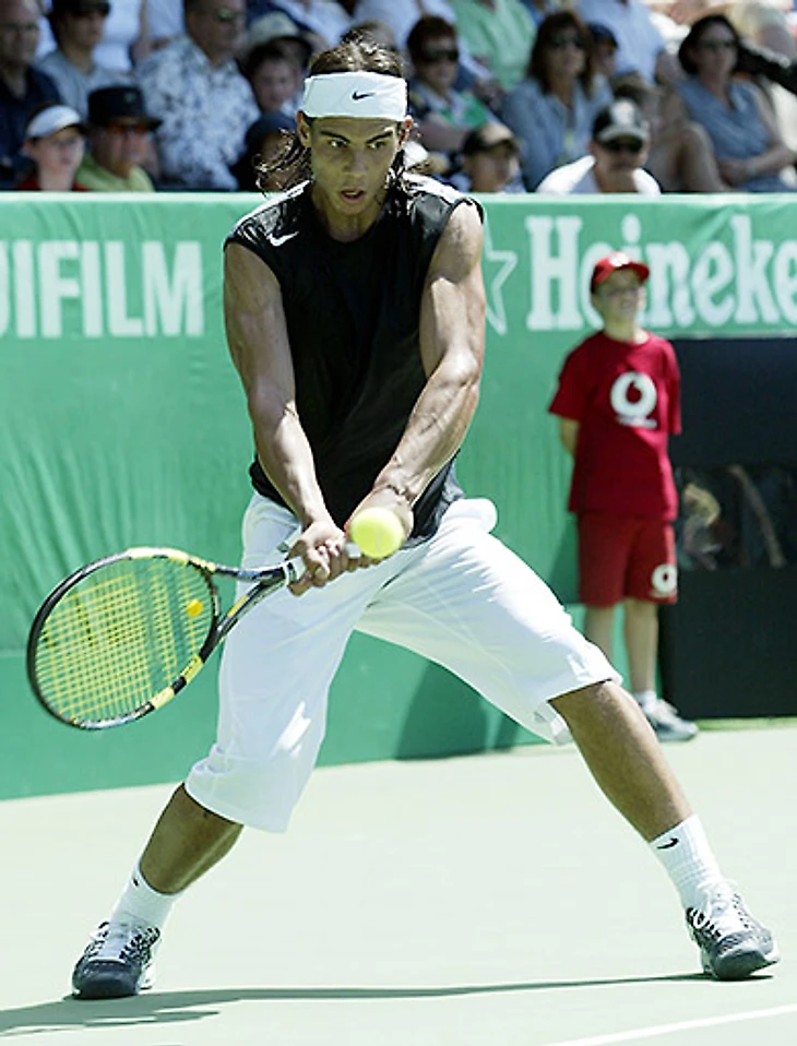 В середине нулевых Рафаэль Надаль взорвал теннисный мир не только своей игрой, дикой энергетикой и результатами, но и неожиданным имиджем. Сочетание удлиненных шортов с футболкой без рукавов и прической а-ля Маугли для тенниса было откровением, стало визитной карточкой Рафы и знаковым для истории спорта образом.