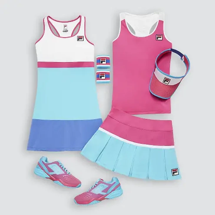 Коллекция сохранила традиционную эстетику бренда Fila, то есть классические порезы и цветные блоки. В новой коллекции дизайнеры использовали цвета такие цвета, как синий с оттенком пурпурного (amparo blue), малиновый (raspberry rose) и голубой (blue atoll), что концептуально освежило подход компании к женской теннисной одежде. Такое решение следует считать очень прогрессивным и смелым с их стороны, так как компания в основном использует тёмно-синий (navy), красный (red) и белый (white).