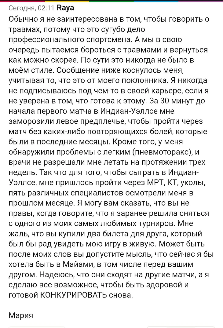 Тем временем, Мария понемногу начинает восстановления (в сообщении подруге она написала детокс)