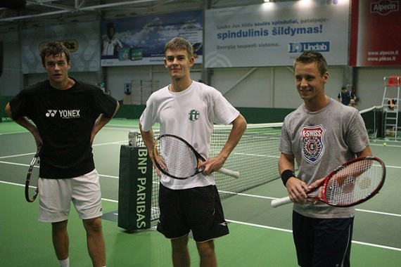 Но как оказалось, нет предела совершенству. После ужаса с эстонским выездом (где Беранкис умудрился травмироваться, да так, что потом так и не оправился и выбыл на три месяца), первый и второй номера команды, Беранкис и Григялис, со словами "Шото опасно ныне быть патриотом" дружно укатили в Америку, готовиться к ЮСО (Григялис имеет шансы наконец-то отобраться в квалификацию, Беранкис - набиваться после травмы), так что торжественное звание ветерана, дедушки и просто Атца перешло к Довидасу Сакинюсу, 18 лет (на фотке выше слева) .