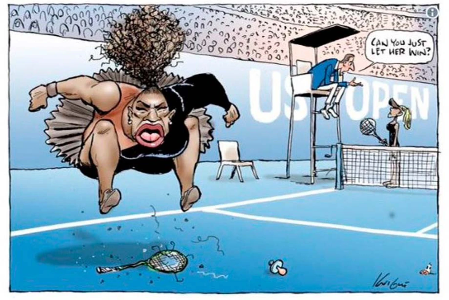 Также она судилась с известным австралийским карикатуристом Марком Найтом. Теннисистке не понравилось что автор рисовал ее темнокожей и сочла это элементом расизма.