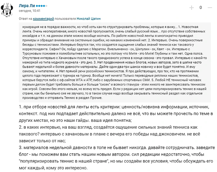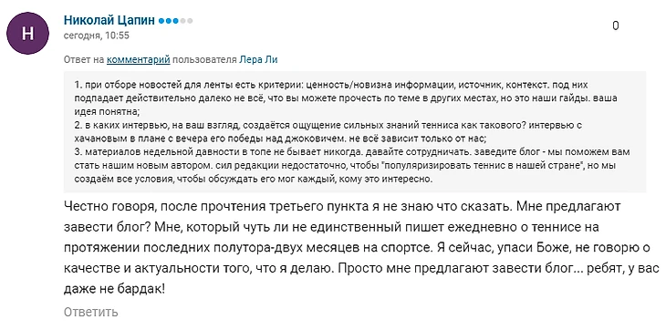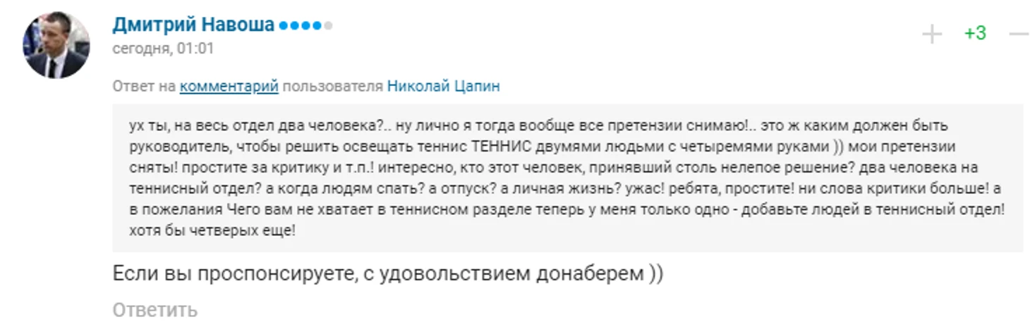 Степень погруженности в то, что происходит в теннисном разделе у штатных сотрудников просто запредельная!