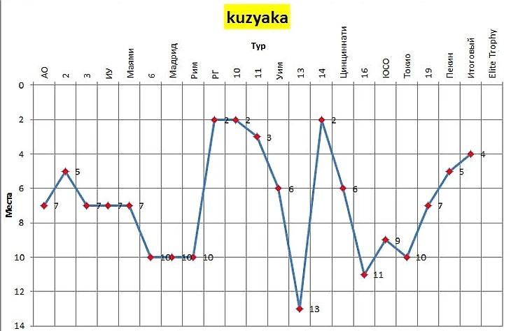 Вторые места: В этом сезоне mihej-lost дважды не удалось выиграть ТБШ, и он останавливался в шаге от победы. Uyjvbr один раз не удалось выиграть ещё один ТБШ. kuzyaka заняла второе место на ТБШ впервые в карьере.