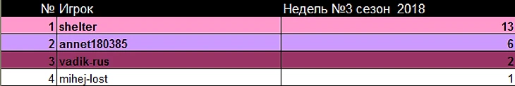 И посмотрим на таблицу, которая показывает количество недель пребывания на 3 месте в сезоне 2018.