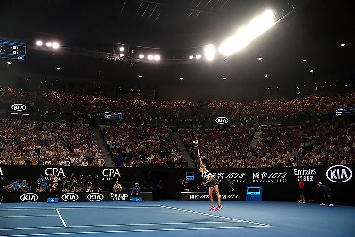 Матч начался на почти 40-градусной жаре, и сразу же существовала вероятность того, что его остановят и закроют крышу над ареной имени Рода Лэйвера. С точки зрения здравого смысла, это стоило сделать еще до начала встречи, потому что погода в Мельбурне, судя по всему, невыносимая: на находящихся под солнцем трибунах было очень много пустых мест, а корт так нагрелся, что несчастные болбои, сидящие на корточках у сетки, не могли не него опереться. В социальных сетях гостей турнира предупреждали, что не надо трогать перила (можно обжечь руку), а программа «Гейм, Шетт и Матс» на «Евроспорте» вышла с задержкой, потому что в студии канала из-за жары отрубилось электричество.