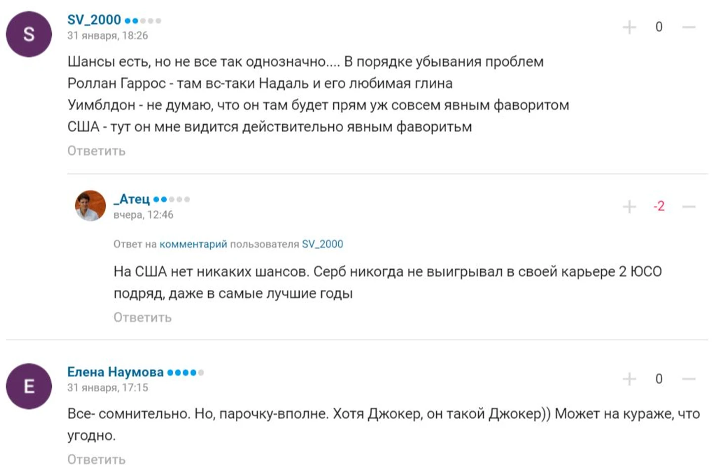Больше трети пользователей Трибуны верят, что Джокович выиграет все четыре «Шлема» в этом сезоне