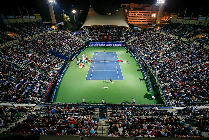 Дубай: Дубайское соревнование организовано как мужской турнир накануне сезона-1993, когда местные организаторы выкупили у турнира в бразильском Масейо лицензию чемпионата базовой категории основного тура ATP. Новый турнир вошёл в околоевропейскую хардовую серию, расположенную в календаре между Australian Open и крупным чемпионатом в Индиан-Уэллсе. Одним из руководителей соревнования является эмир Дубая Мохаммед ибн Рашид аль-Мактум. Рекордсменом мужского одиночного турнира по числу побед является швейцарец Роджер Федерер, семь раз выигрывавшим местный титул между 2003 и 2015 годами. Четыре титула на счету серба Новака Джоковича.