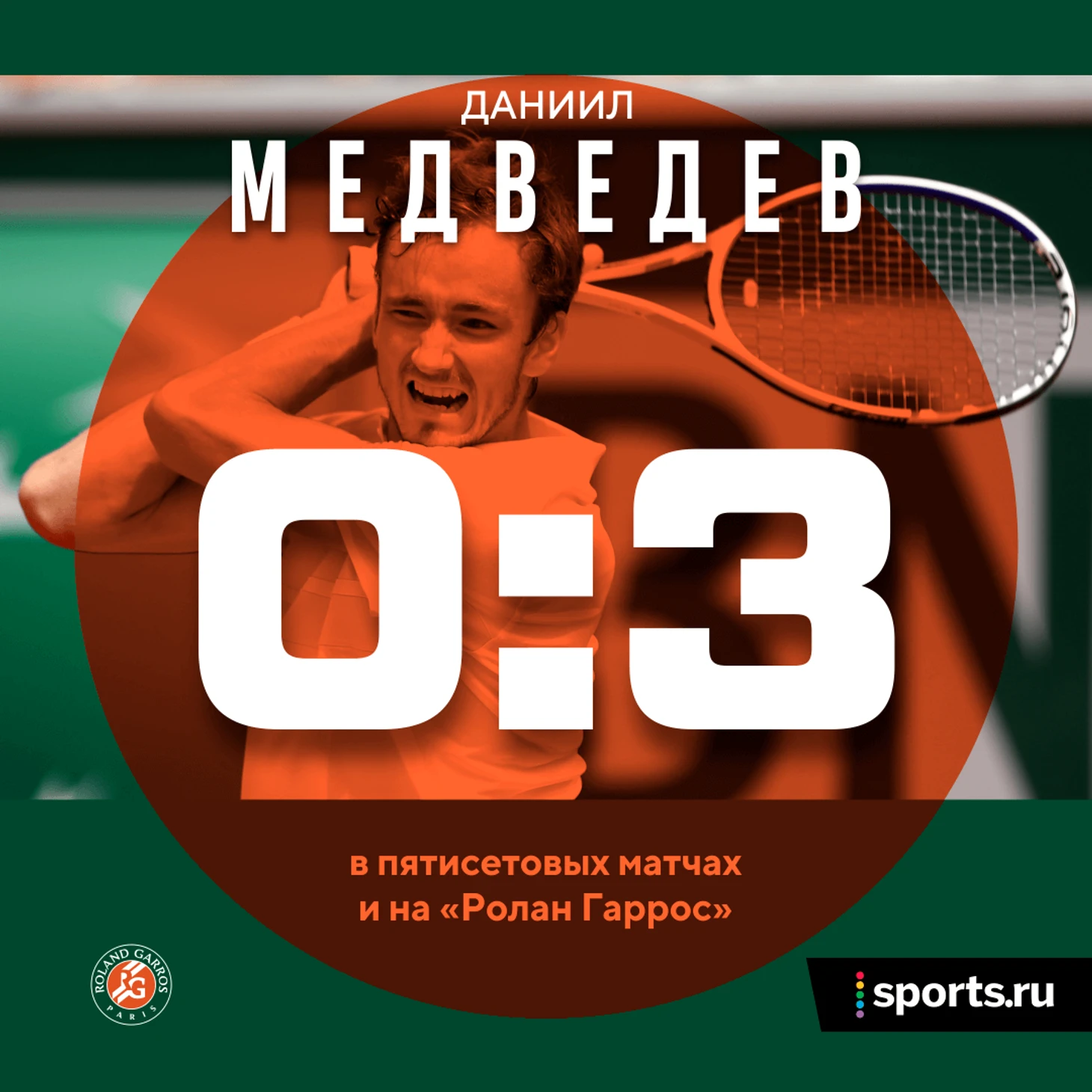 Медведев на «Ролан Гаррос» проиграл, ведя 2:0 по сетам. Недостаток агрессии ему очень вредит