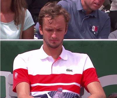 В третьем сете Даниил немного просел и отдал свою подачу. Короткого провала хватило, чтобы Эрбер поймал волну уверенности, прибавил и начал очень серьезно давить на Медведева. Под этим напряжением россиянин сломался и заошибался преступно много. У него вообще ничего не получалось, и его игру и настроение прекрасно описывает вот эта гифка.