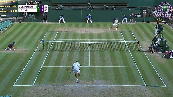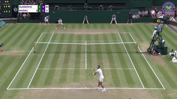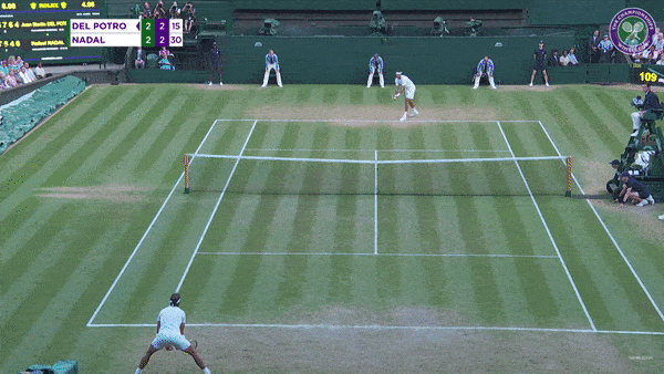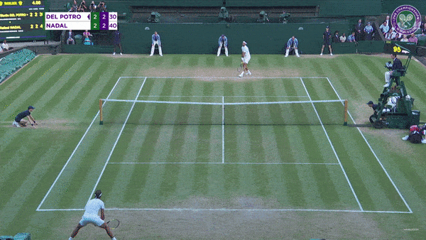 Пример, когда сам Рафа стал жертвой стремительного движения вбок на скользкой траве. В прошлогоднем полуфинале Джокович таким образом заработал тройной матчбол.