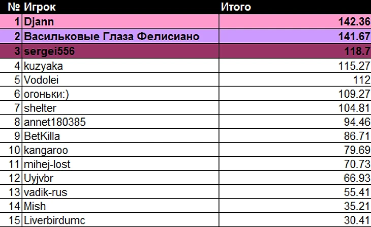 А самое большое падение вниз в чемпионской гонке было у двух игроков у Balu13_13 и bombadil (-3 позиций)