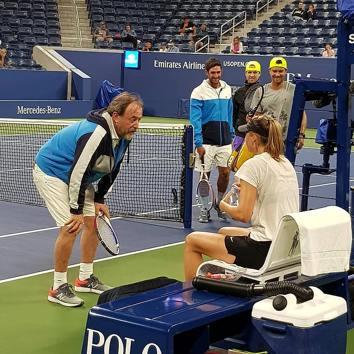 Уже не протолкнуться на корте рядом с Машей)). Я бы тоже встала рядом с Машей и даже с ракеткой в руках, но толку от нас всех мало.