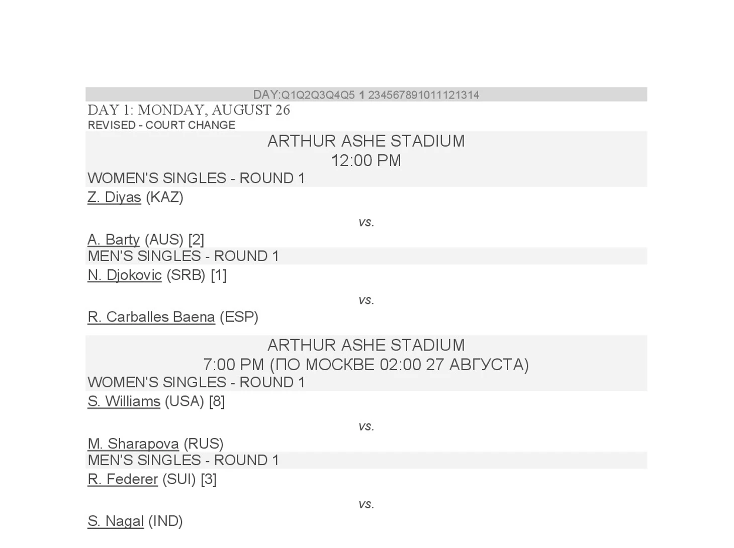 ИТАК: Играем сегодня, не ранее 13:00 по местному, по мск 20:00 на центральном корте.