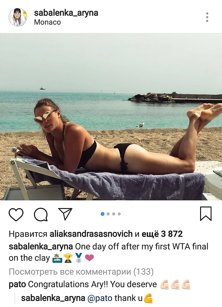 При этом Пато, который сейчас вернулся на Родину и выступает за «Сан-Паулу», не стеснялся комментировать фотографии теннисистки в Instagram.